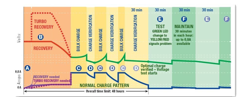 - Veilige impulsdesulfatatie met lage spanning.